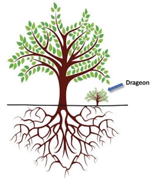 Certains arbustes sont vendus greffés sur un porte-greffe : une autre espèce ou variété, mais toujours un proche parent. La plupart des rosiers buissons (hybrides de thé, grandifloras et floribundas), certains lilas et presque tous les arbres sur tige (arbustes formés pour ressembler à de petits arbres) sont greffés sur un tel porte-greffe. Tout drageon poussant à partir des racines d’un arbuste greffé donnera donc l’espèce porte-greffe et non la variété désirée.