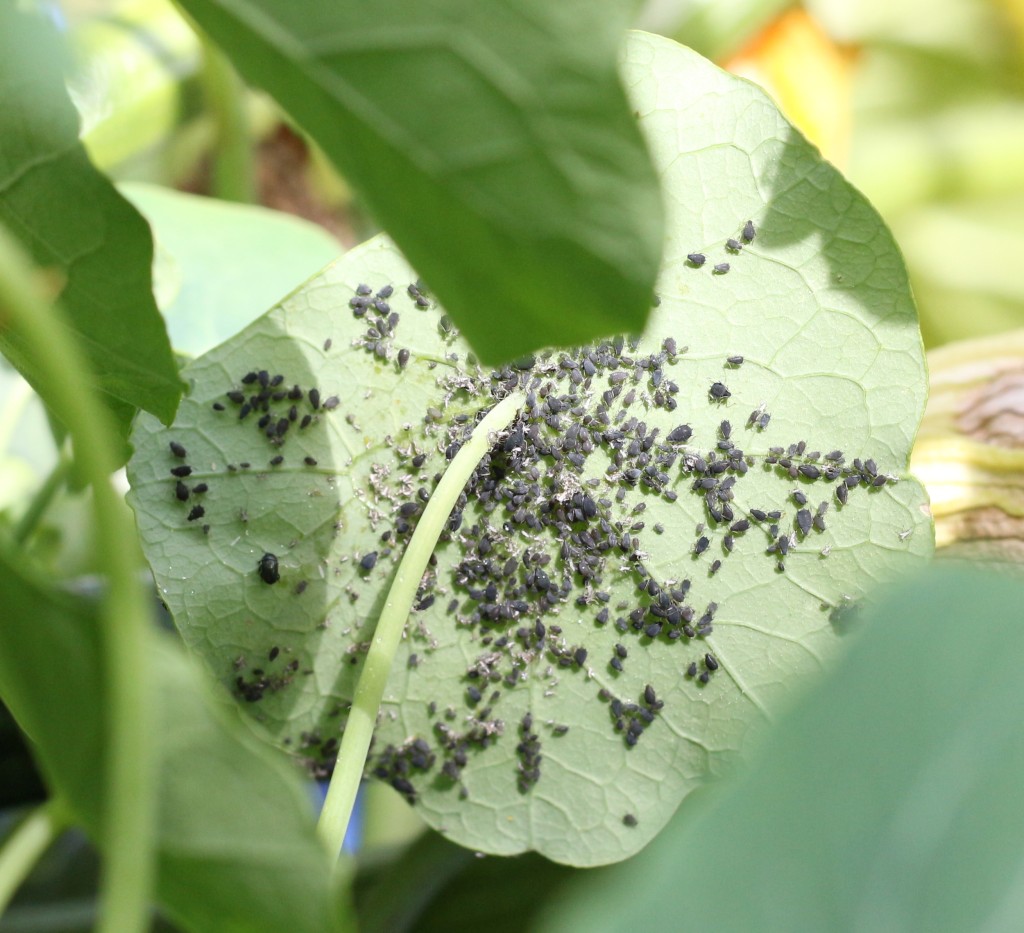 Capucine infestée de pucerons. Photo: cuckoosvegpatch.wordpress.com