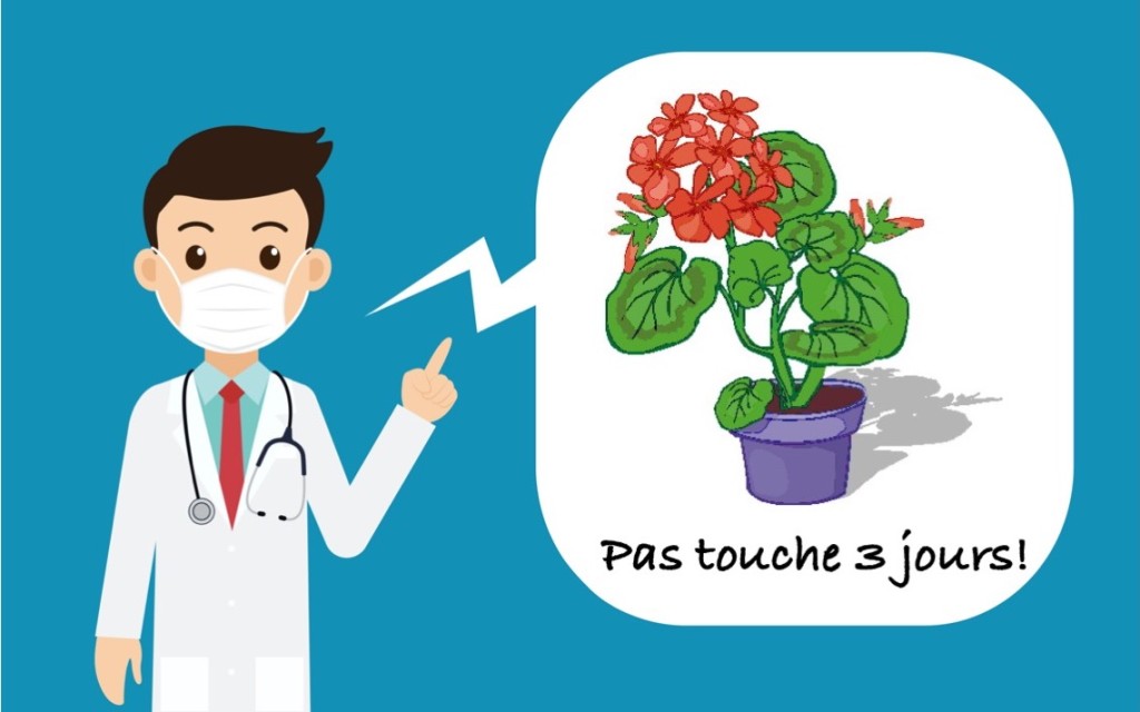 Si vous faites livrer une plante, lavez-vous encore les mains après toute manipulation, nettoyez le pot avec l’eau savonneuse et, encore, ne touchez plus à la plante pendant trois jours. Ou encore, laisser la plante dans son emballage pendant 3 jours avant de l’ouvrir.