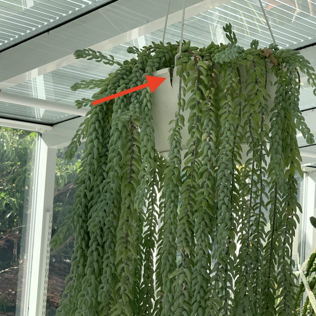 Aucun pot n’est éternel et parfois vous n’avez pas d’autre choix que d’en remplacer un. C’est ce qui est récemment arrivé avec une de mes plantes d’intérieur, un sédum queue d’âne (Sedum morganianum) qui est suspendu dans ma serre depuis maintenant 6 ans. C’est la 4e génération d’une plante que je cultive depuis plus de 40 ans.
