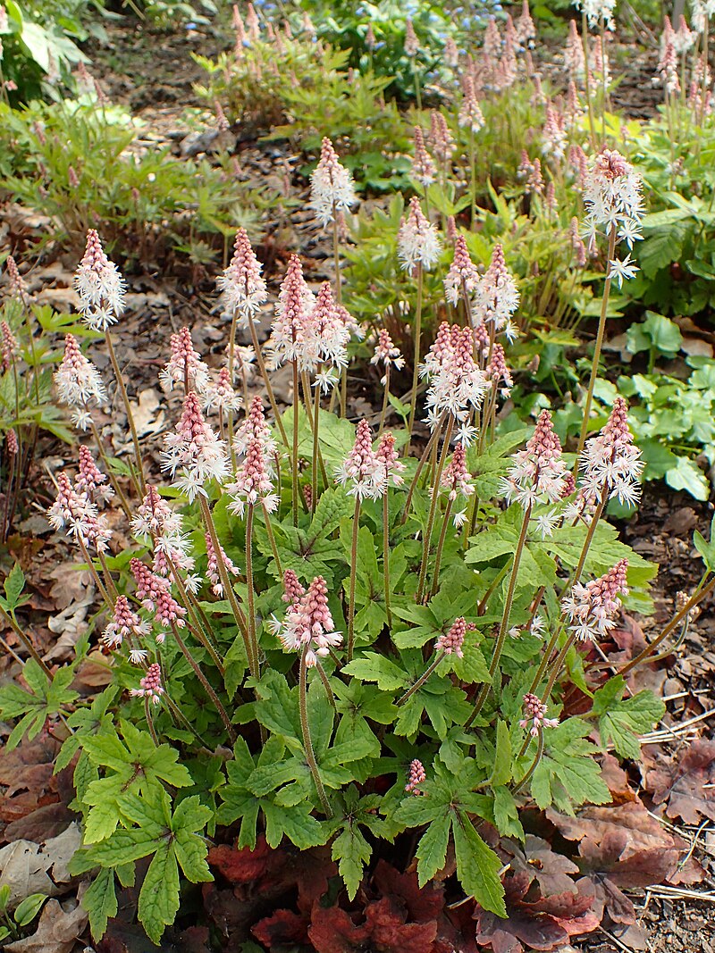 Toute personne qui trouve que les tiarelles ont un petit air de famille avec les heuchères a parfaitement raison. Ces deux plantes font partie de la même famille botanique, les Saxifragacées. D’ailleurs, elles sont si proches cousines, qu’il est possible de croiser une heuchère et une tiarelle ensemble! Cela donne une variété qui n’existe pas dans le milieu naturel, les heucherelles (X Heucherella spp.). Il y a aussi beaucoup de belles variétés à découvrir dans ce groupe!
