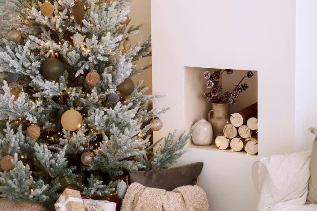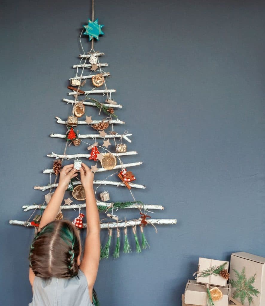 Certaines personnes optent également pour des arbres muraux minimalistes faits de lumières, de guirlandes ou d’ornements suspendus – idéal quand l’espace manque ou pour limiter la consommation matérielle.