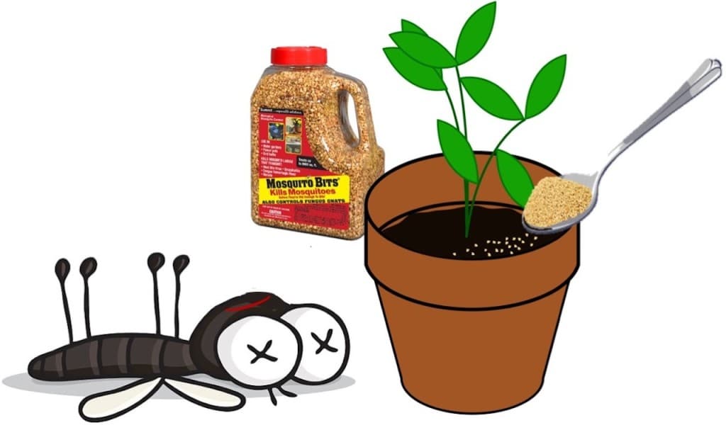 Vous trouverez dans toutes les quincailleries des pastilles en forme de beigne de la marque Mosquito Dunks, conçues pour contrôler les moustiques et les mouches noires. Eh bien, c’est le même produit sous une autre formulation. Alors, procurez-vous ces pastilles et réduisez-les en granules. Ensuite, utilisez ces granules faites maison de la même façon que les granules Mosquito Bits, les appliquant au terreau pour arroser par la suite.