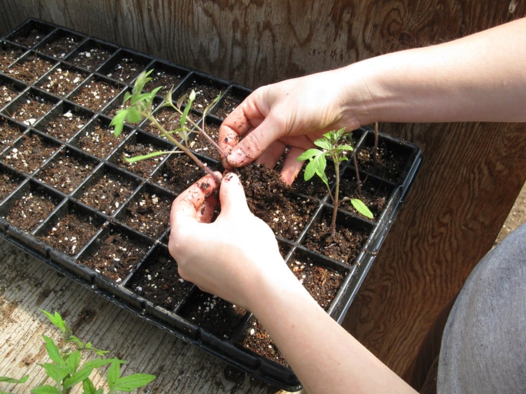 Repiquage de semis de tomate. Photo: goingtoseed.wordpress.com