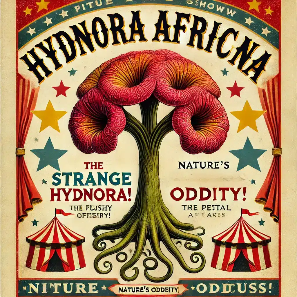 Certains vont jusqu’à dire que l’Hydnora est la plante la plus bizarre au monde. Qu’en pensez-vous, cher public? Votre maître de scène, elle, en doute. Non pas que je connaisse une plante unique digne de ce titre, qui suis-je pour prétendre une telle chose? Mais dans le vaste monde, comme dans ce cirque végétal, chaque curiosité a sa place et elle est la bienvenue.