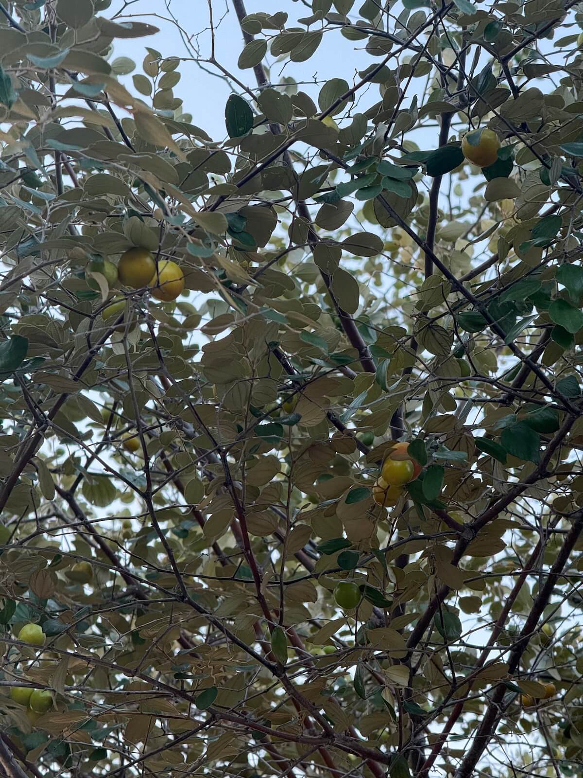 Finalement, j’ai pu lui demander quels étaient les fruits qu’elle cueillait: de petites pommettes à peine plus grosses qu’une cerise, jaunes puis brun rouge à maturité. Des jujubes, me dit-elle. Quelle surprise de découvrir que des fruits portant le nom d’une friandise populaire poussaient sur un arbre bien réel, dans une cour urbaine, avec très peu de soins, mis à part une taille occasionnelle pour éviter que les branches n’empiètent sur la ruelle et ne nuisent à la circulation!