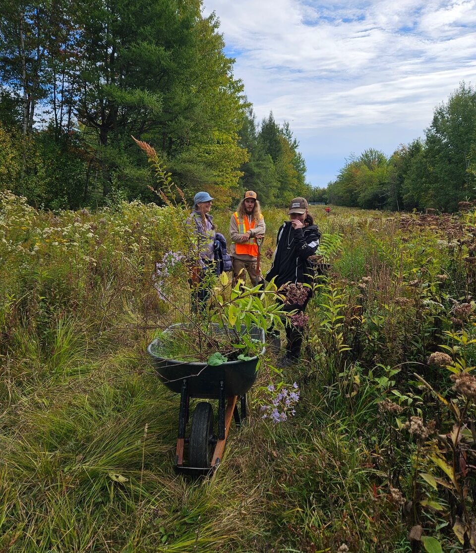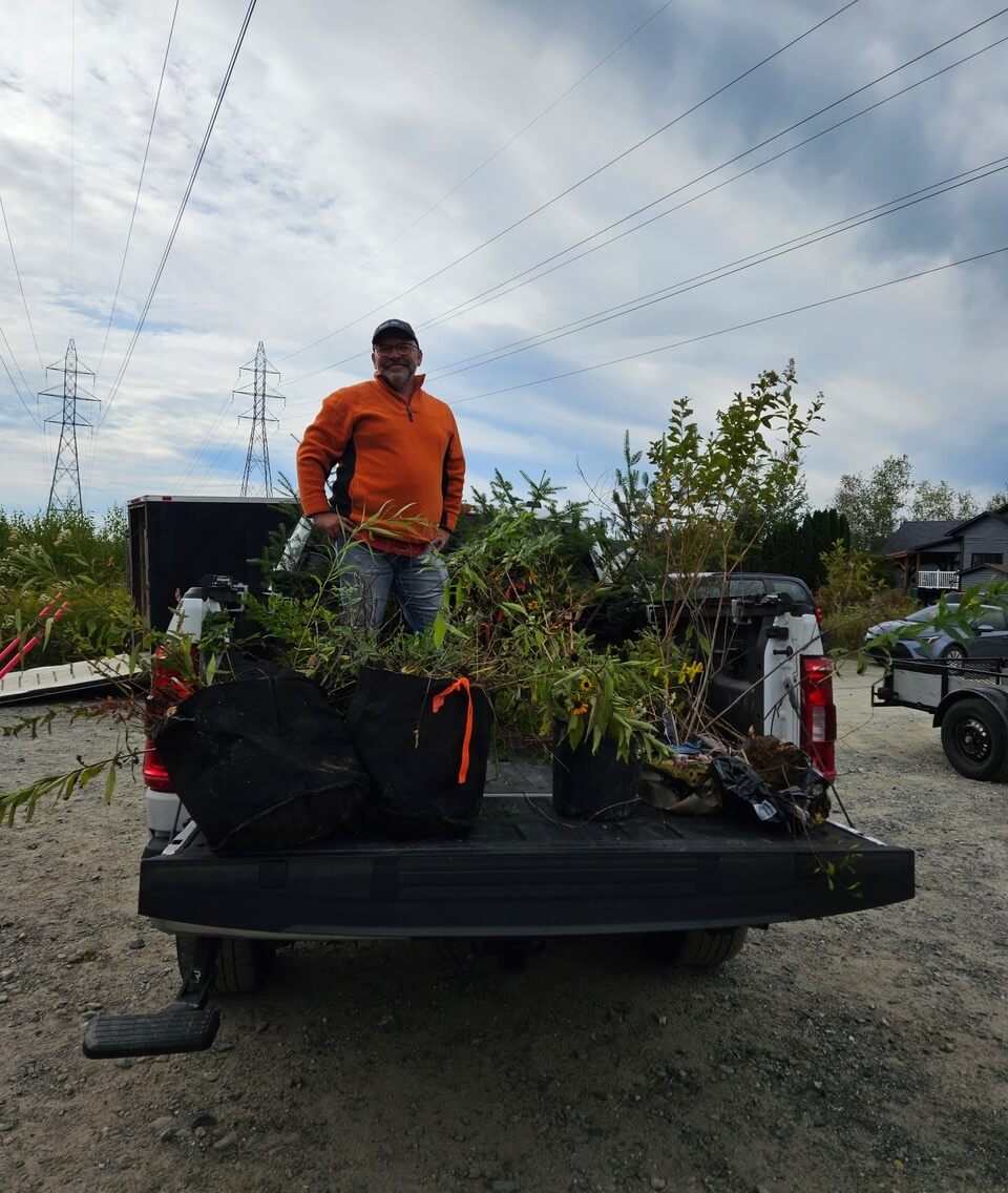 Lorsque j’ai participé à la dernière collecte de l’année, le 11 octobre 2025 à Magog, j’y suis allée avec ma pelle et assez peu d’attentes. À ma grande surprise, il y avait un beau comité d’accueil sous une tente, il y avait des pelles à ma disposition (bien meilleures que la mienne) ainsi que des brouettes et même un professionnel pour m’aider à identifier les plantes. Je suis repartie très heureuse avec une dizaine de petits chênes rouges, des pins et des épinettes que des bénévoles m’ont aidée à emballer dans de la toile de jute pour éviter de salir ma voiture. Un service exceptionnel!