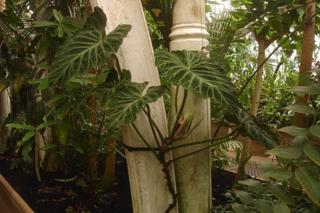 Fixé sur un mur du Jardin, il y avait un beau spécimen de Philodendron verrucosum. C’est un philodendron grimpant aux grandes feuilles veloutées bicolores. Ce n’est pas la plante d’intérieur la plus facile à cultiver en raison de son besoin d’humidité élevée. Cependant, le jardin se situe à l’orée de la jungle, donc le manque d’humidité n’était pas un problème!