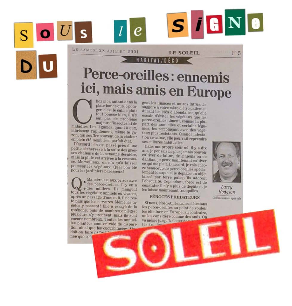 Voici la réponse que j’ai donnée à une lectrice au sujet d’une invasion de perce-oreilles en 2001. Et, 20 ans plus tard, les perce-oreilles ne sont toujours pas un problème digne de mention dans mes jardins.
