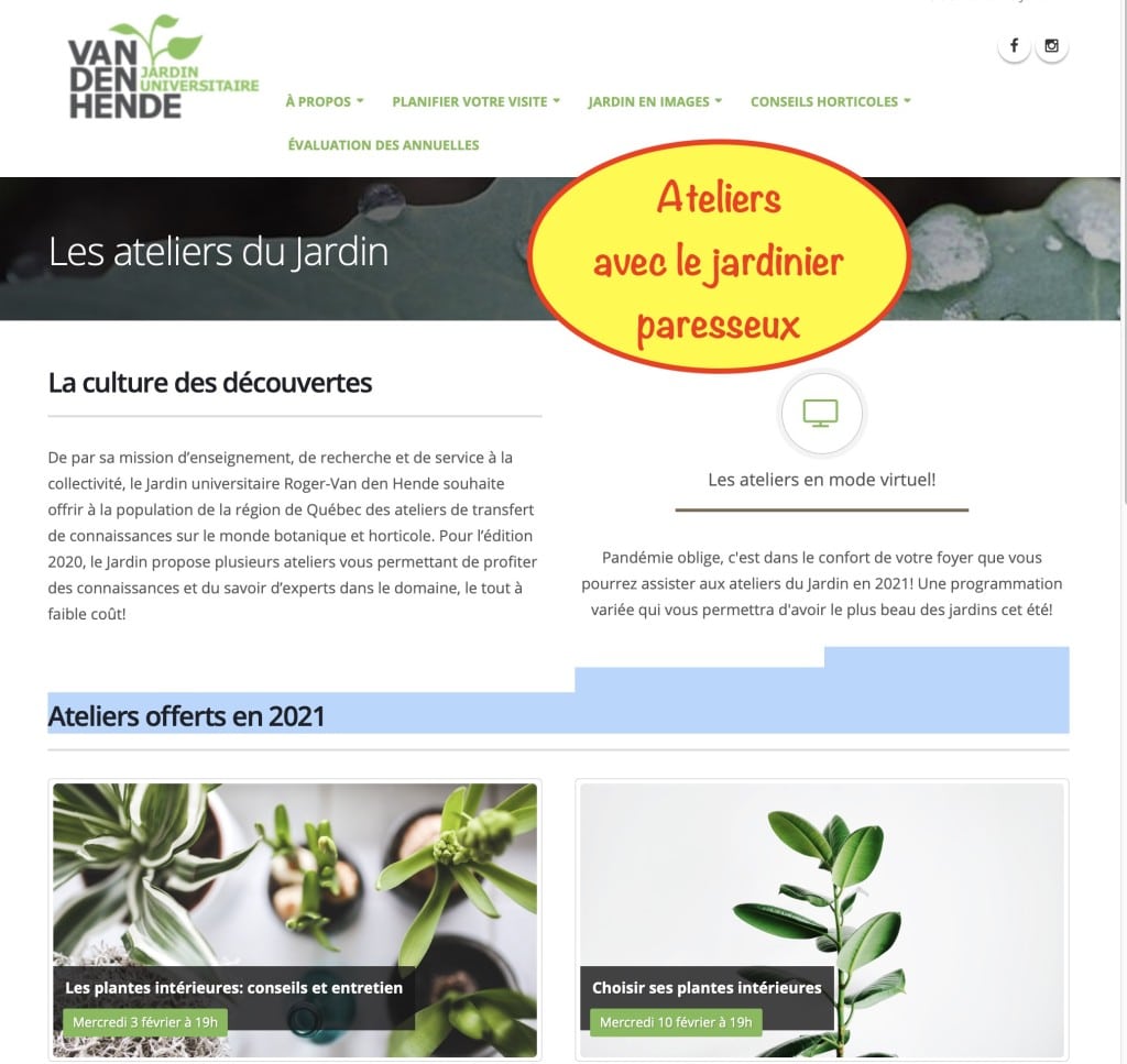 Information et inscription: www.jardin.ulaval.ca/les-ateliers-du-jardin/