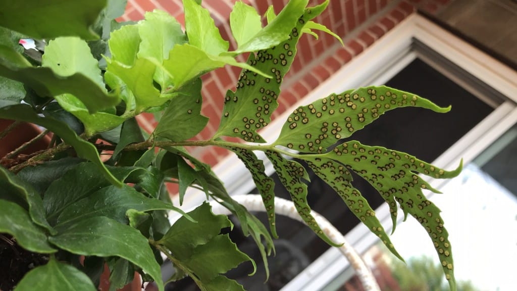 Notez qu’il est possible de confondre des sores avec des cochenilles à carapace, des insectes nuisibles qui aussi se développent souvent sous les feuilles des fougères et d’autres végétaux pour former des bosses brunes (ou d’autres couleurs).