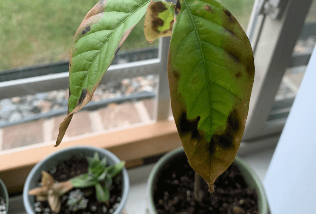 Le feuillage des avocatiers peut brunir pour plusieurs raisons: air trop sec, arrosages excessifs ou insuffisants, excès d’engrais, manque de lumière et plus encore. Toutefois, tant que de nouvelles feuilles paraissent pour remplacer les feuilles mortes ou mourantes, cela n’est pas si grave. Il faut accepter qu’un avocatier d’intérieur sera toujours plus un «sujet de conversation» qu’une «grande beauté».