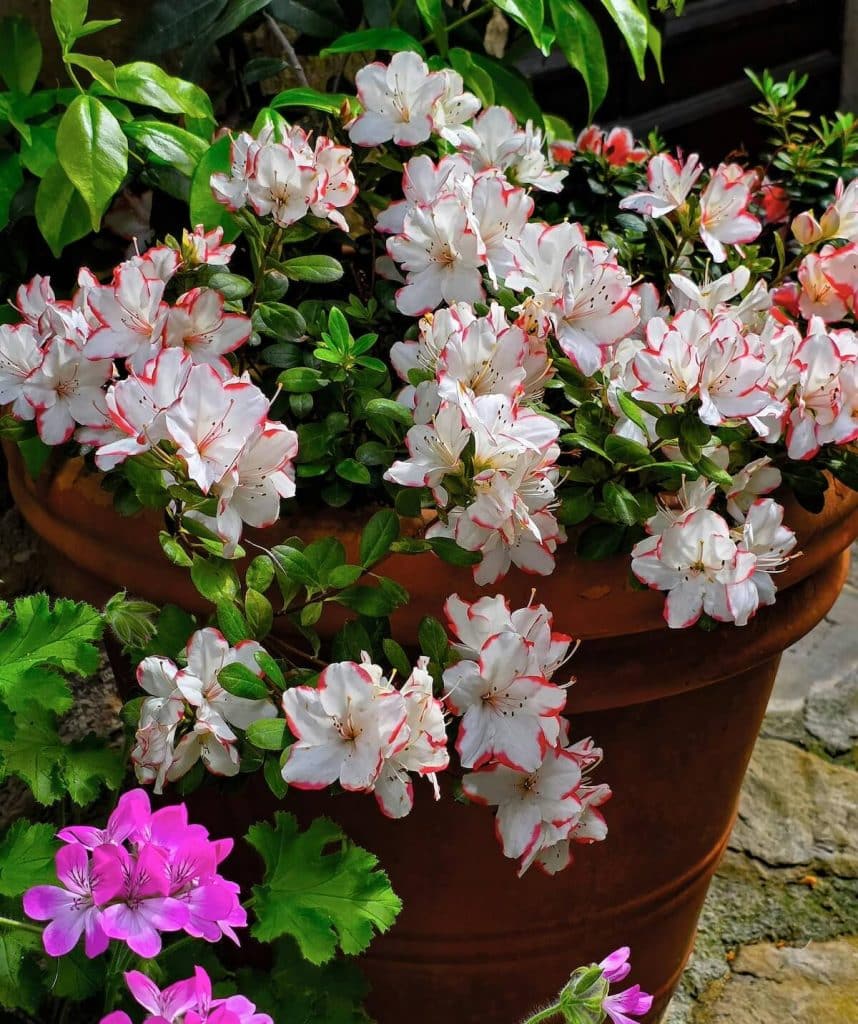 Je possède une azalée des fleuristes depuis plusieurs années. Elle passe les étés à l’extérieur et les hivers dans une pièce fraîche.