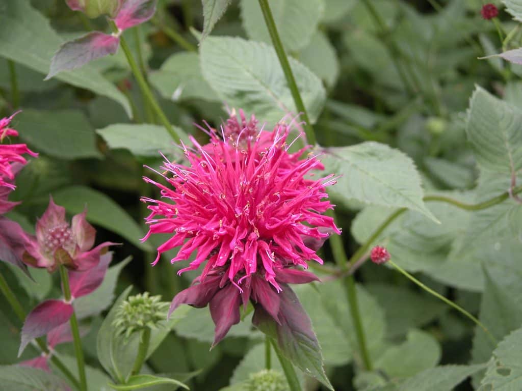 Toutes ces règles permettent de constater que ce ne sont pas tous les rouges qui s’harmonisent bien ensemble. Tous les rouges ne sont pas rouges. Il y a des rouges qui tendent vers le violet, car ils contiennent un peu de bleu. On pourrait dire qu’ils sont magenta. Ce serait le cas de la monarde ‘Adam’ ou ‘Raspberry Wine’. D’autres rouges contiennent un peu de jaune et tendent vers l’écarlate. Ce serait le cas de la monarde ‘Jacob’s Cline’. Ces deux plantes, bien que rouges, ont de la difficulté à s’harmoniser. C’est alors qu’on découvre que les fleurs rouge magenta s’harmonisent mieux avec les fleurs mauves ou violettes. À l’opposé, une fleur rouge écarlate serait mieux accompagnée par des fleurs orangées.