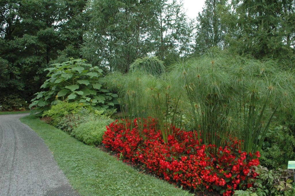 La véritable couleur neutre est plutôt le gris. Le gris est plus discret. L’œil n’est pas porté vers le gris. Celui-ci peut être utilisé pour rediriger le regard vers un point d’intérêt. Un massif de feuillage gris aux côtés de la plante vedette et une autre tache de gris, un peu derrière, aide l’œil à cerner ce qu’il y a d’intéressant. Le gris est aussi la solution pour séparer deux plantes qui ne s’harmonisent pas bien ensemble.